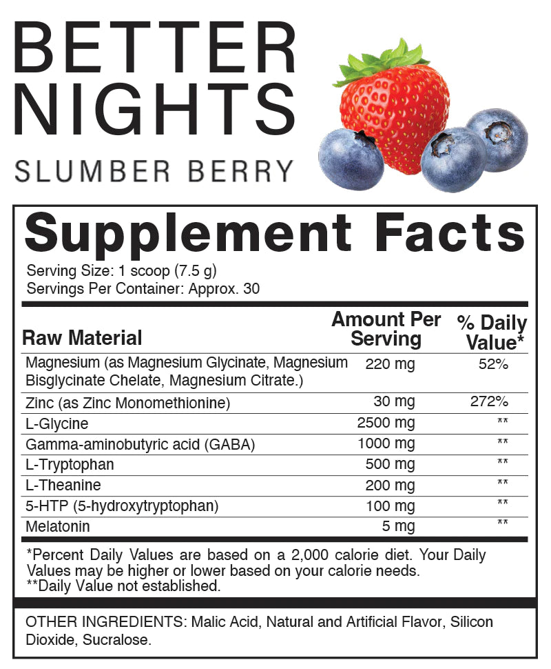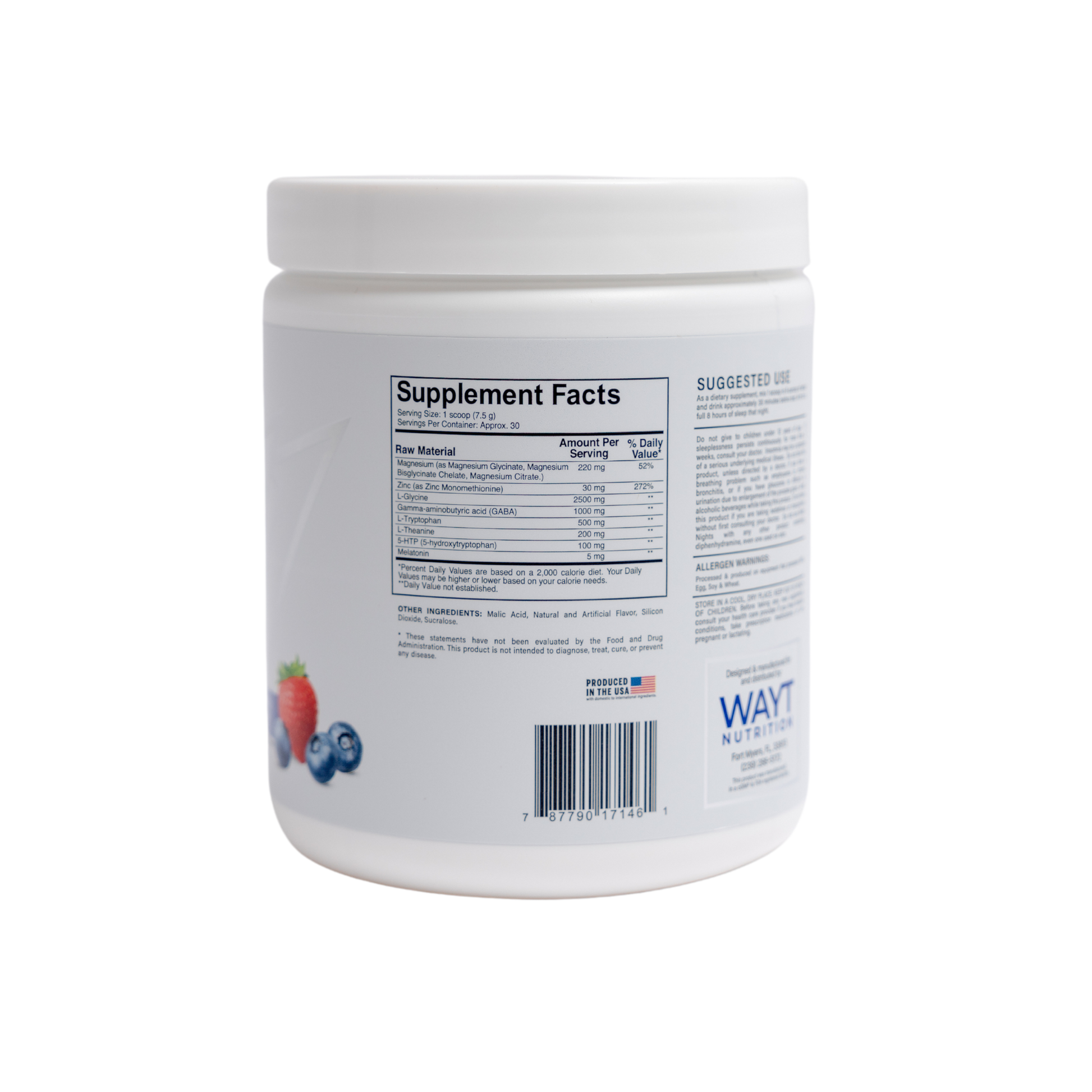 Are you tossing and turning? Waking up regularly? It's time you try Better Nights. Our unique nighttime sleep-aid will help you wind down, quiet your mind, and reduce the time it takes to fall asleep. We've formulated an optimal blend of sleep-inducing and enhancing ingredients in a tasty nighttime beverage. From the more commonly known magnesium and melatonin to the industry secrets of Zinc, L-Glycine, GABA, L-Tryptophan, L-Theanine, and 5-HTP, WAYT's Better Nights will deliver on its name. Find relief and better sleep quality with WAYT Nutrition's Better Nights.*
