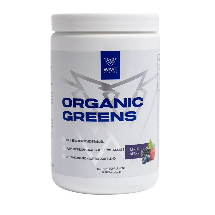 Greens - Equivalent to a full serving of vegetables, WAYT’s Mixed Berry Organic Greens are an easy, tasty way to supplement in more nutrients while boosting your immunity. Known to help detoxify the body, reduce blood pressure, support immunity, decrease inflammation, and even lower blood sugar, our Organic Greens are a healthy answer for every single person regardless of athletic ability or workout regime. If your diet could use more veg and you simply can’t seem to fit it in… Organic Greens will get you there.