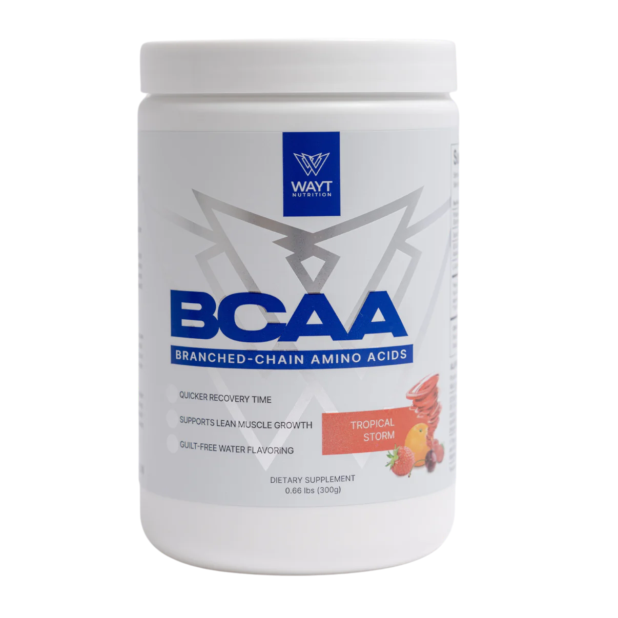BCAA - BCAAs, or branched-chain amino acids, are essential to one’s diet because they are not naturally created by the body. They are specifically helpful during and after workouts because they help reduce muscle fatigue or cramping, increase stamina, speed recovery time and support lean muscle growth. WAYT’s BCAA also includes glutamine and potassium citrate, which further aid in recovery! This important supplement can also be taken during intermittent fasting to keep from entering a catabolic state. It’s time you take your workout, recovery and nutrition up a notch with WAYT’s delicious BCAA.